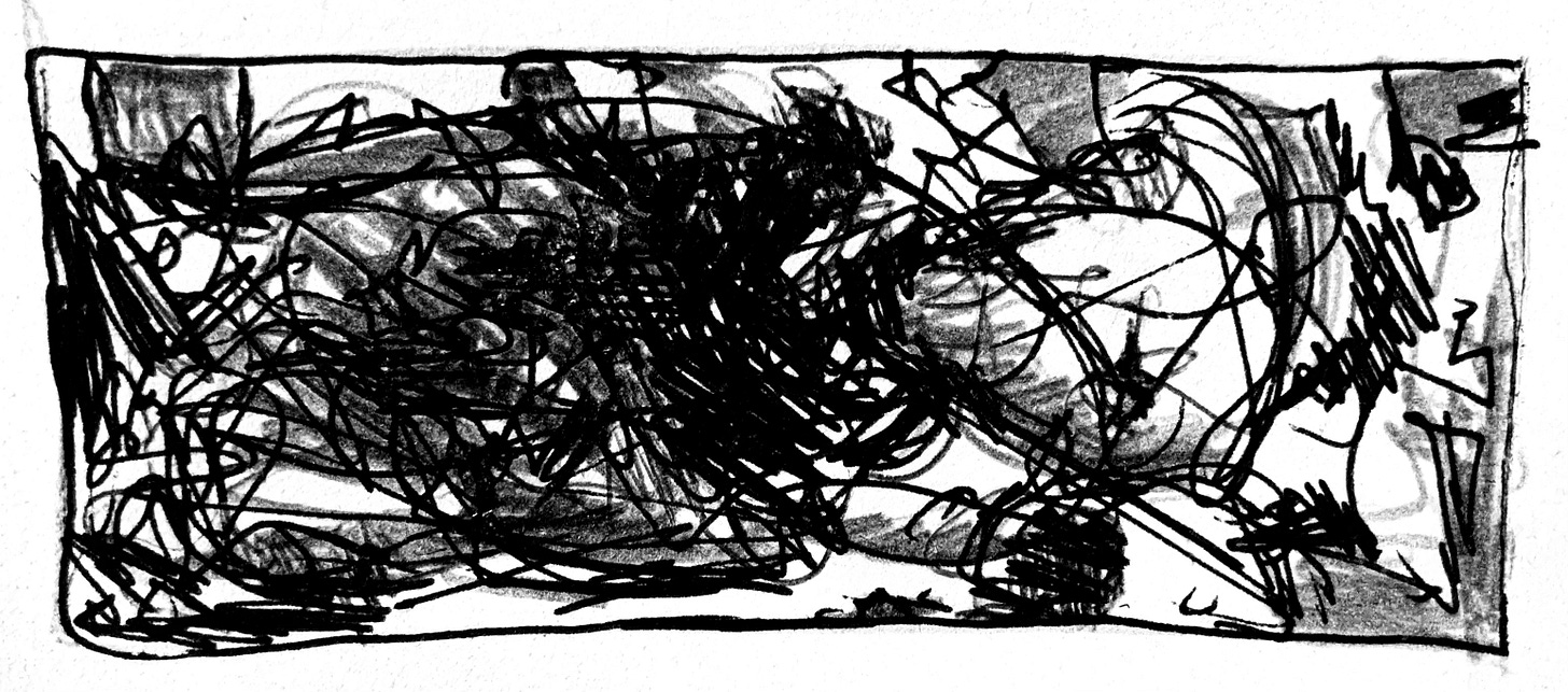 “Down where?” I ask. This kind of impatience surfaces on one’s skin if not careful, bursting like bubonic boils.