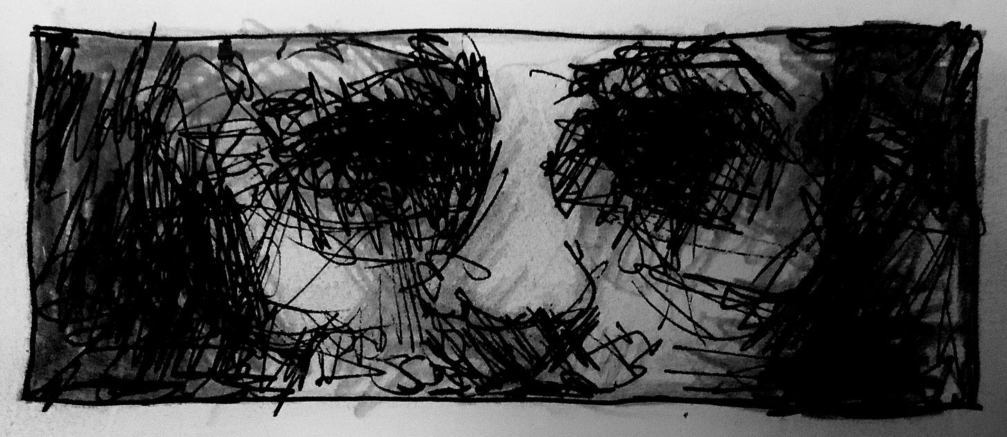 The list of my sores is as long as my body has places to name. Itches blend seamlessly with the high-pitched feedback from unseen wounds. Imagined while felt. My body is a wound. Inside and out. My mind a palace burning. Soon there will be no rooms left. I will have to get out of this building. Go elsewhere.