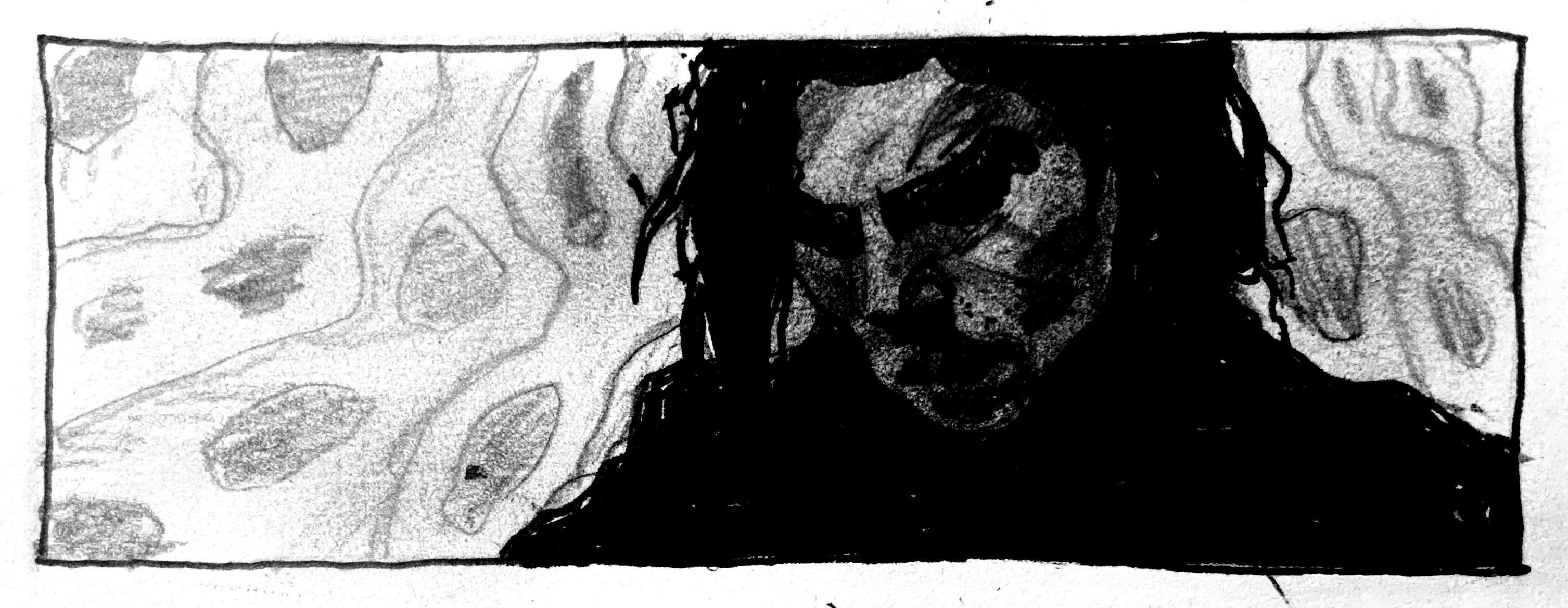 There’s a grinding noise for a while. To my left. More like scraping. Chalkboard torture upsetting a part of my brain already irritated. I can pinpoint the source. Marked by crawler activity on the ceiling.